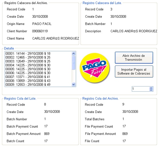Así es como Ud. puede leer la información del archivo de transmisión de Pago Fácil ingresando el programa Lector del Archivo de Transmisión de Pago Fácil desarrollado por iiifilomena®Software y que viene integrado con la agenda de gestión de cobranzas.